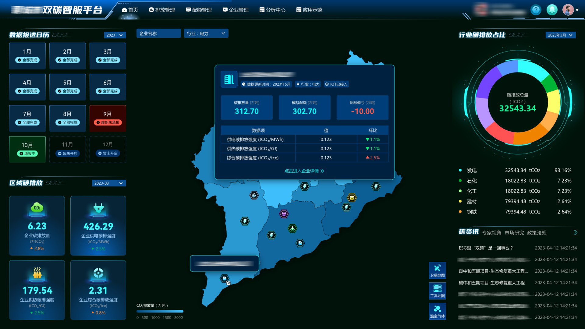 雙碳背景下,各級黨委和政府均需明確“時間表、路線圖、施工圖”,但在實現雙碳目標的過程中,各級政府存在區(qū)域底數不清、數據滯后、企業(yè)動力不足等困擾。針對上述困擾,推出雙碳智慧服務管理平臺(碳賬本),一圖摸清碳底數、一鍵獲取企業(yè)實時數據,對企業(yè)分級評價,分類施策,調動企業(yè)積極性,讓政府說得清底數、看得清方向、講得清措施。